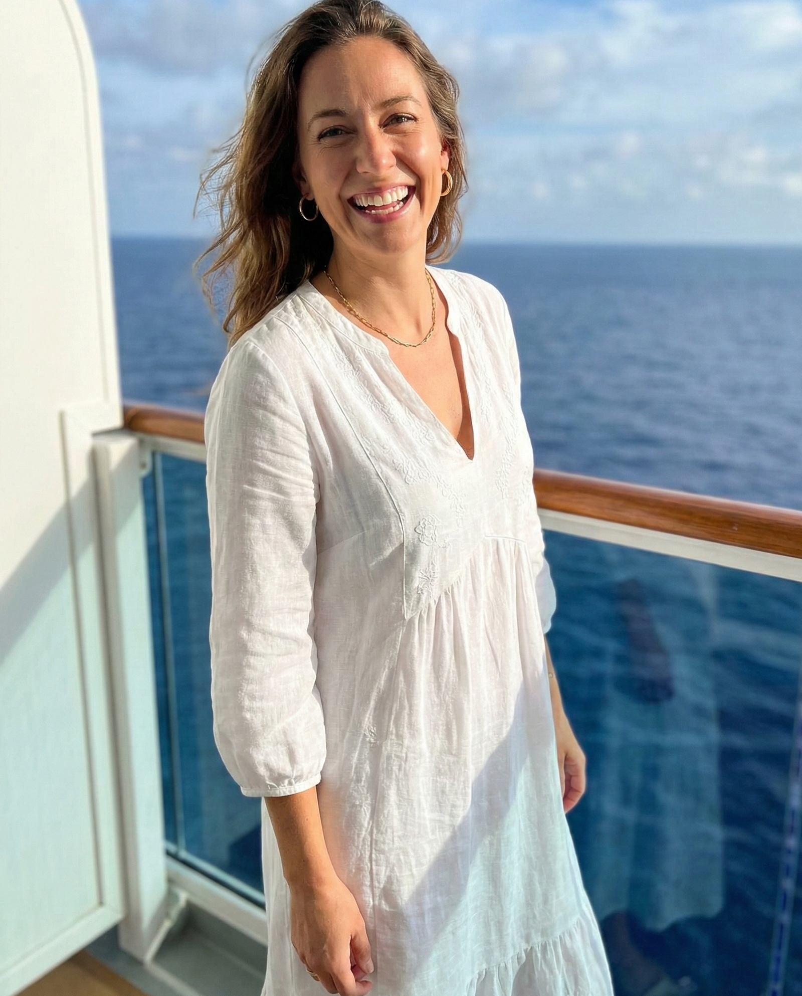 A crisp white dress is timeless for cruise vacations. Whether fitted or flowy, it looks stunning against the ocean backdrop. Pair it with nude sandals and gold accessories for a fresh, elegant look that works for daytime outings or sunset dinners.