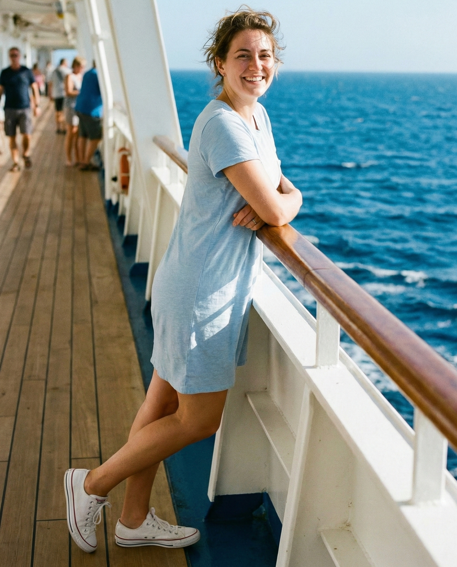 A soft t-shirt dress is perfect for laid-back sea days. It’s easy to style with sneakers or slip-on sandals. Add a belt or denim jacket for extra flair, making it a versatile option for relaxing onboard or grabbing a casual bite.